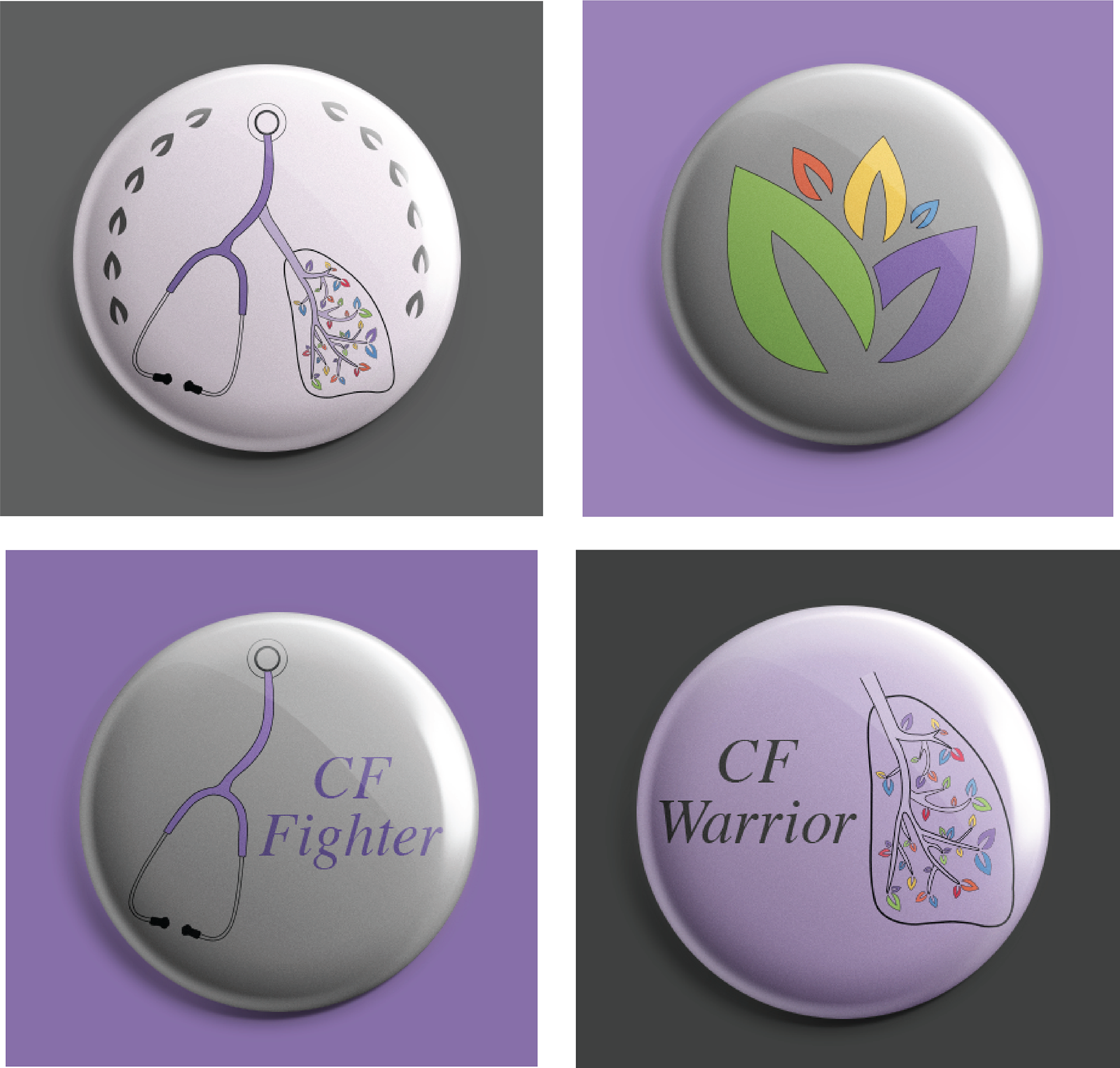 For the consortium I decided to make some swag that doctors, nurses, and other health care professionals can wear. Above are pins that can be worn or put on a bag. Each one showcases an aspect of the logo, and the two on the bottom are made for either doctors or CF patients themselves, so that during the conference people can be distinguished between doctor and patient.