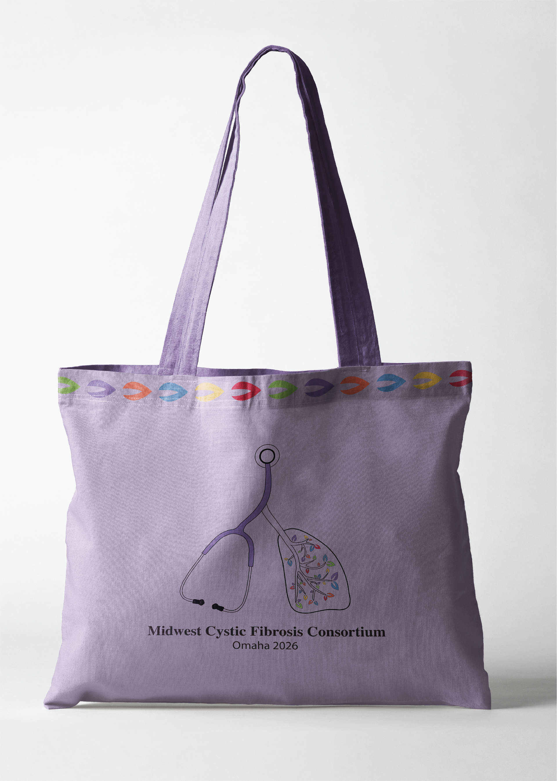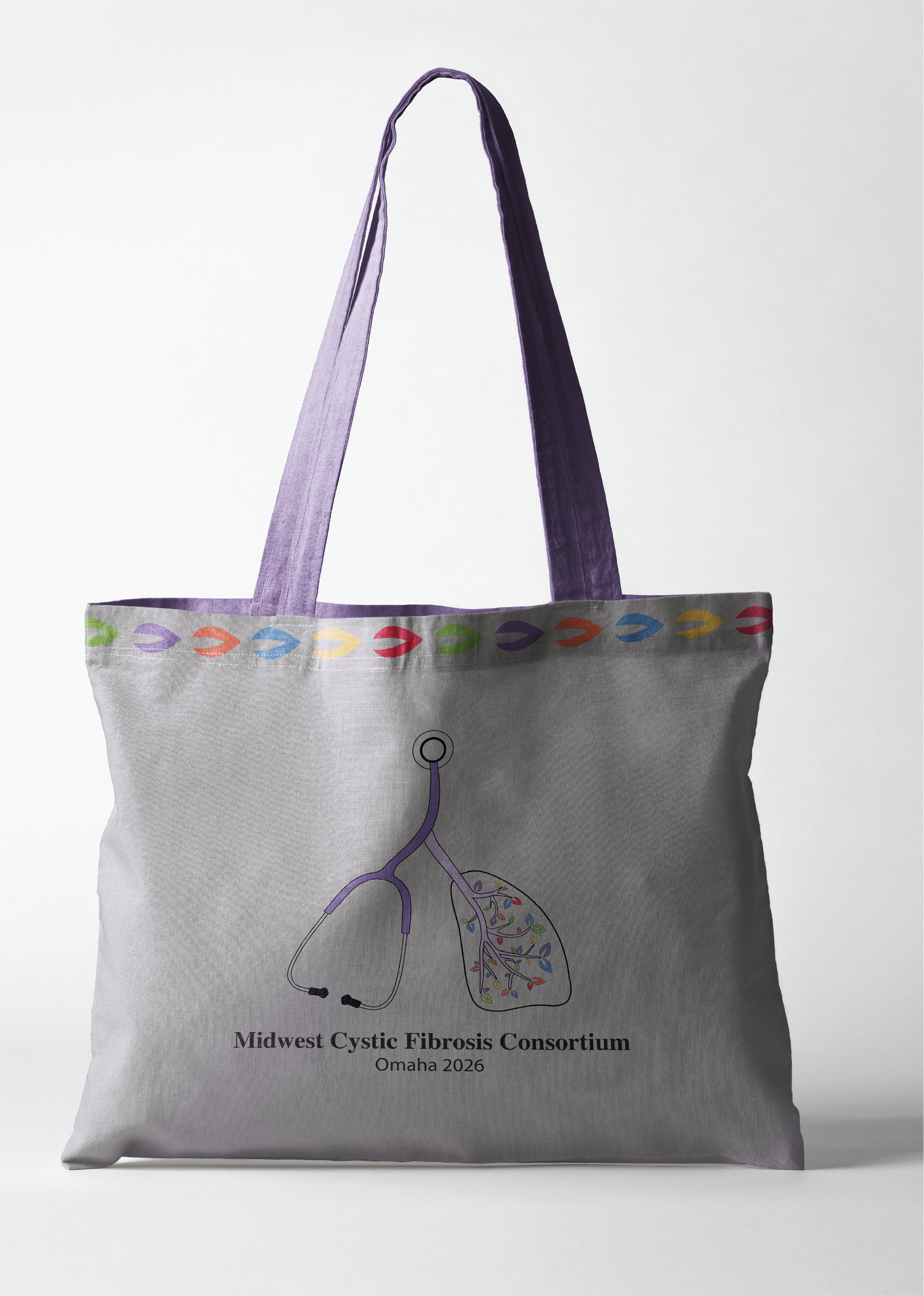 For this project I was asked to create a logo for the annual Midwest Cystic Fibrosis Consortium, which Omaha, Nebraska hosted in 2026. Since I have Cystic Fibrosis with a degree in Graphic Design my doctors decided to ask me to design the logo. They noted that in years past the logos for the consortium centered on Cystic Fibrosis but did not draw in any doctor related ideas or imagery.